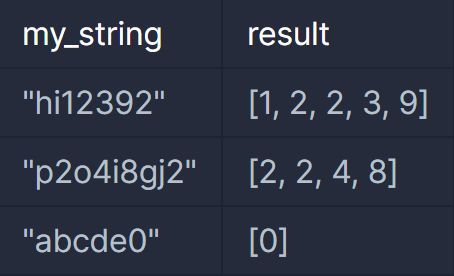 문자열 my_string이 매개변수로 주어질 때, my_string 안에 있는 숫자만 골라 오름차순 정렬한 리스트를 return 하도록 solution 함수를 작성해보세요.