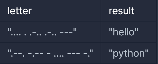 - letter의 모스부호는 공백으로 나누어져 있습니다.