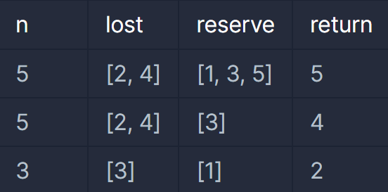 전체 학생의 수 n, 체육복을 도난당한 학생들의 번호가 담긴 배열 lost, 여벌의 체육복을 가져온 학생들의 번호가 담긴 배열 reserve가 매개변수로 주어질 때, 체육수업을 들을 수 있는 학생의 최댓값을 return 하도록 solution 함수를 작성해주세요.