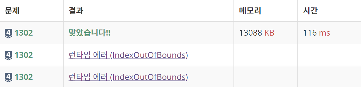 첫번째 풀이 - 런타임 에러(IndexOutOfBounds)