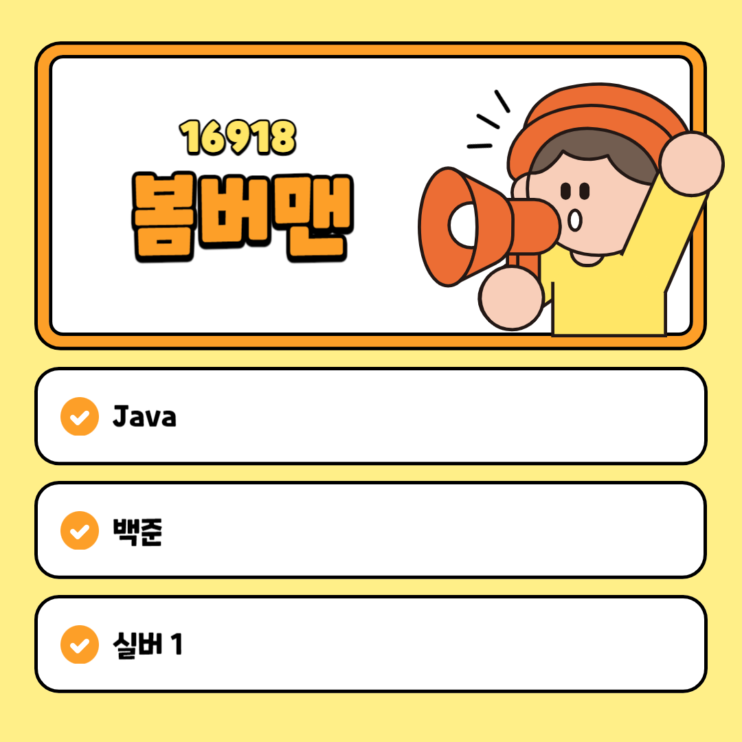 - 가장 처음에 봄버맨은 일부 칸에 폭탄을 설치해 놓는다. 모든 폭탄이 설치된 시간은 같다.